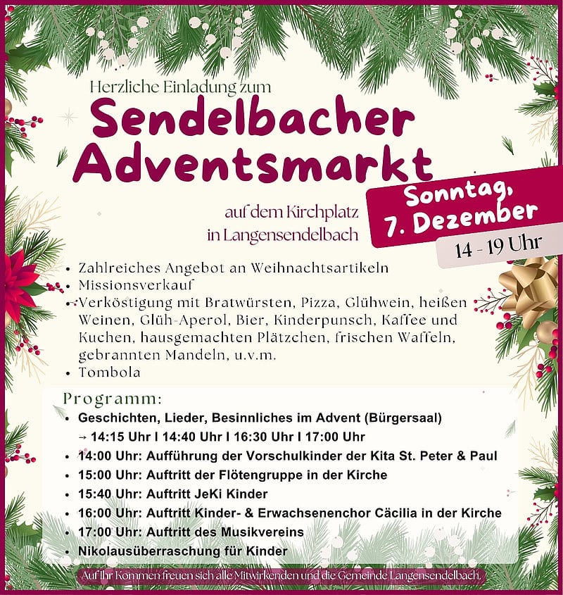 Sie sind hier: Startseite » Herzliche Einladung zum Sendelbacher Adventsmarkt